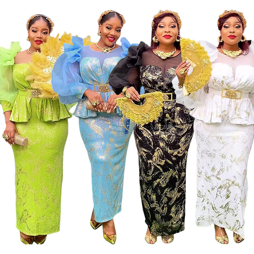 African Dresses for Women 2025 New Fashion Plus Size Sequin Evening Party Long Dress